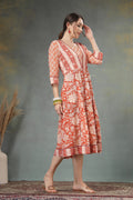 Elevate your everyday wardrobe with this beautifully crafted pure cotton fabric featuring an elegant floral print. Designed for comfort and style, this fabric showcases a rich earthy tone complemented by traditional motifs and contrast borders. Its breathable texture and graceful fall make it perfect for creating dresses, kurtas, or casual ethnic wear. Ideal for both daily wear and festive daytime occasions.