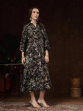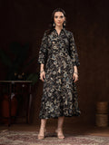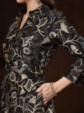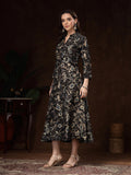 Black Handblocked printed / A-Line Dress