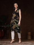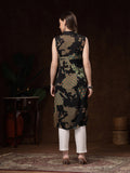 Black Sleeveless Hand Block Printed Kurti