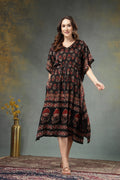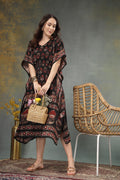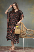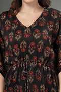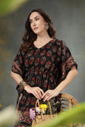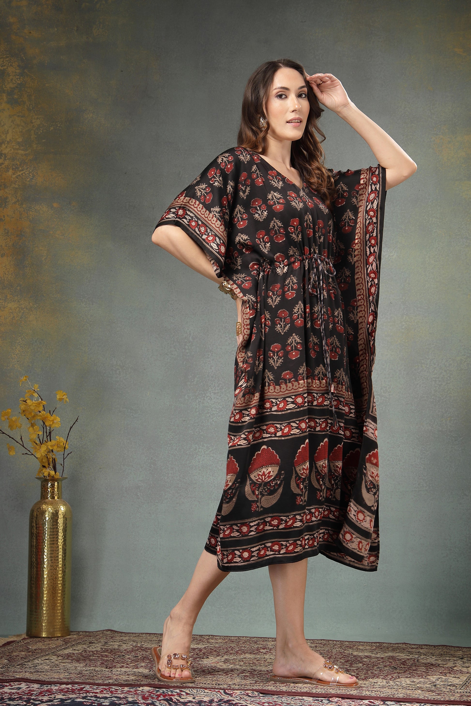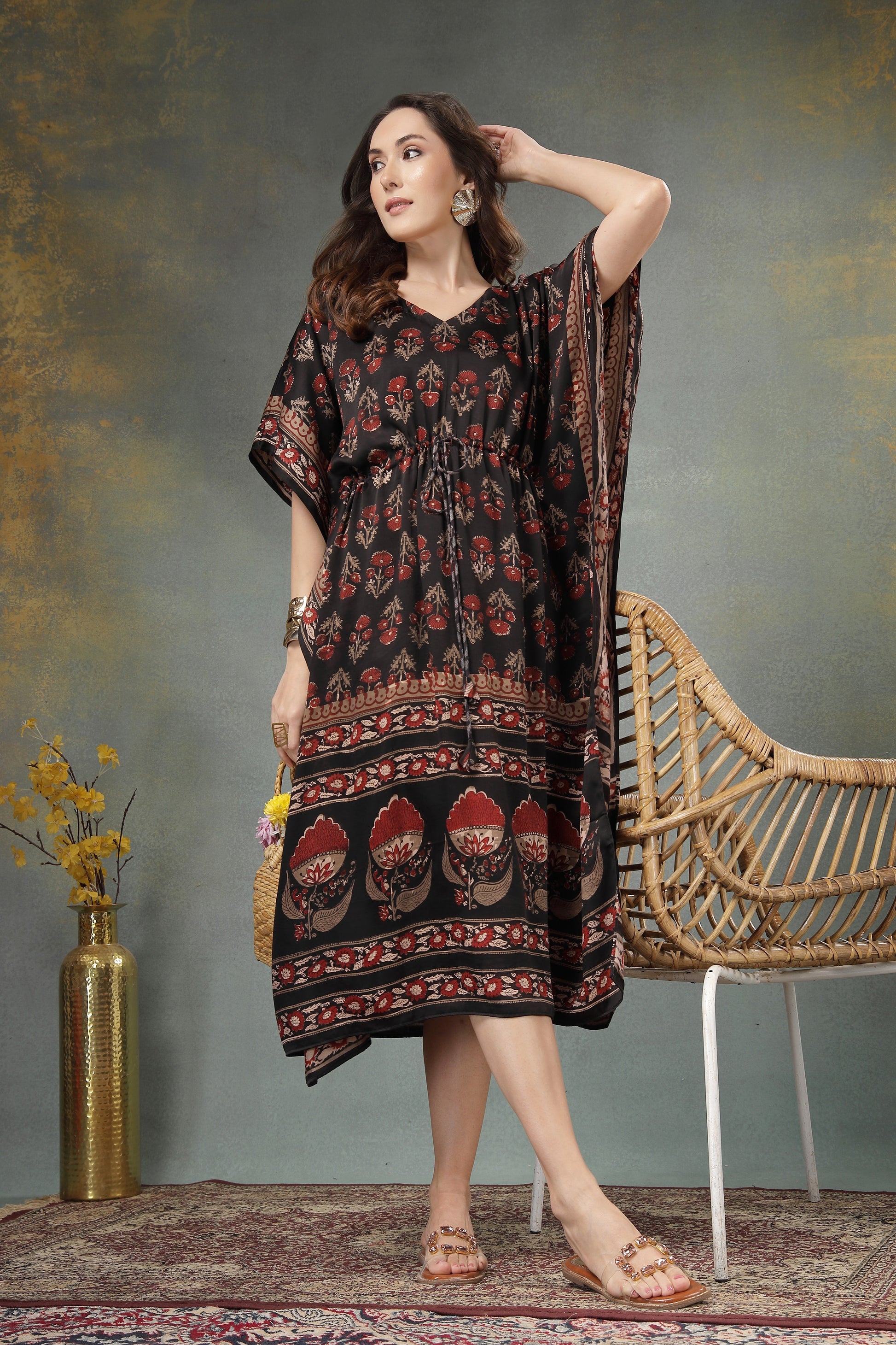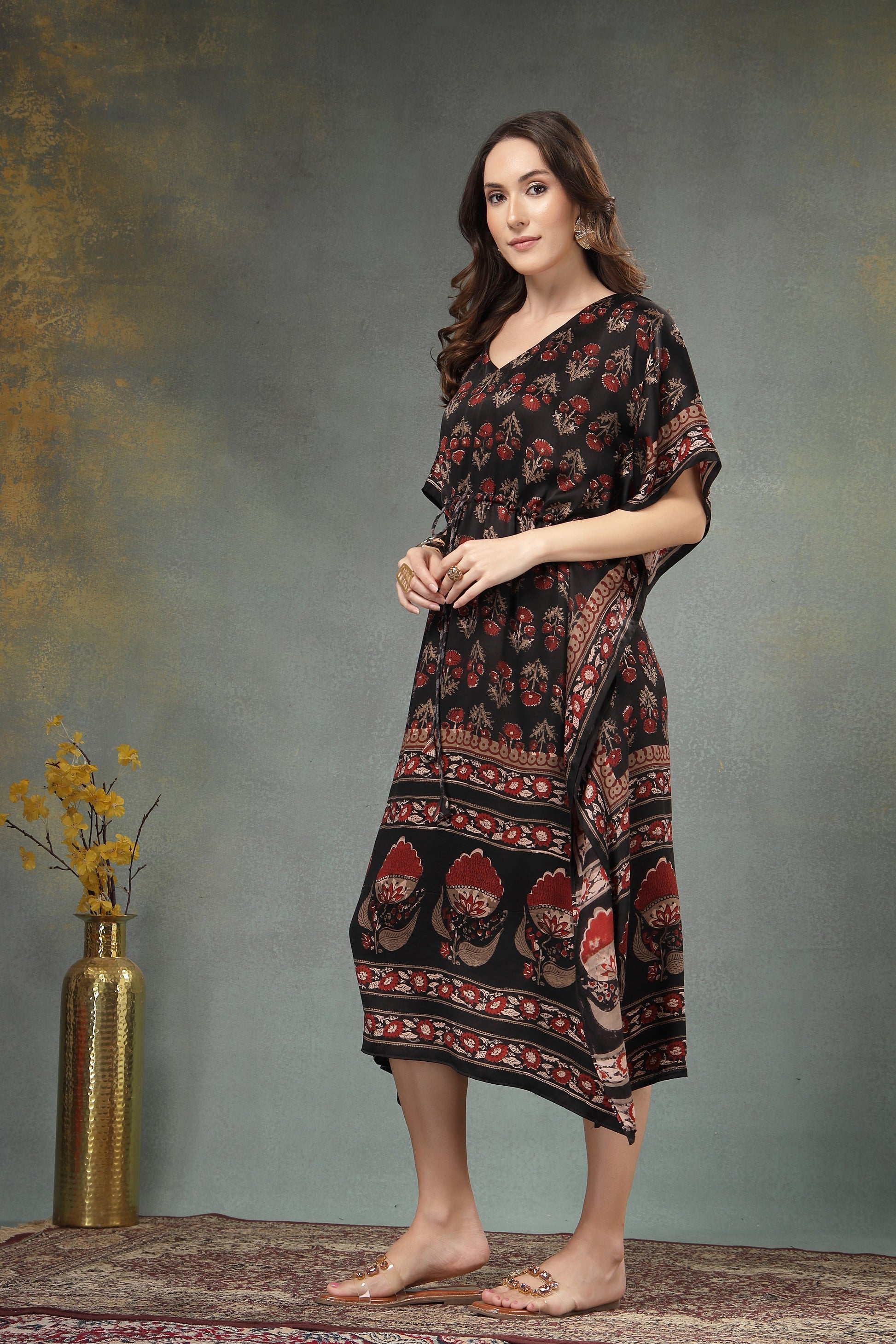 Classic Handblocked Modal Satin Kaftan with Drawstring Waist