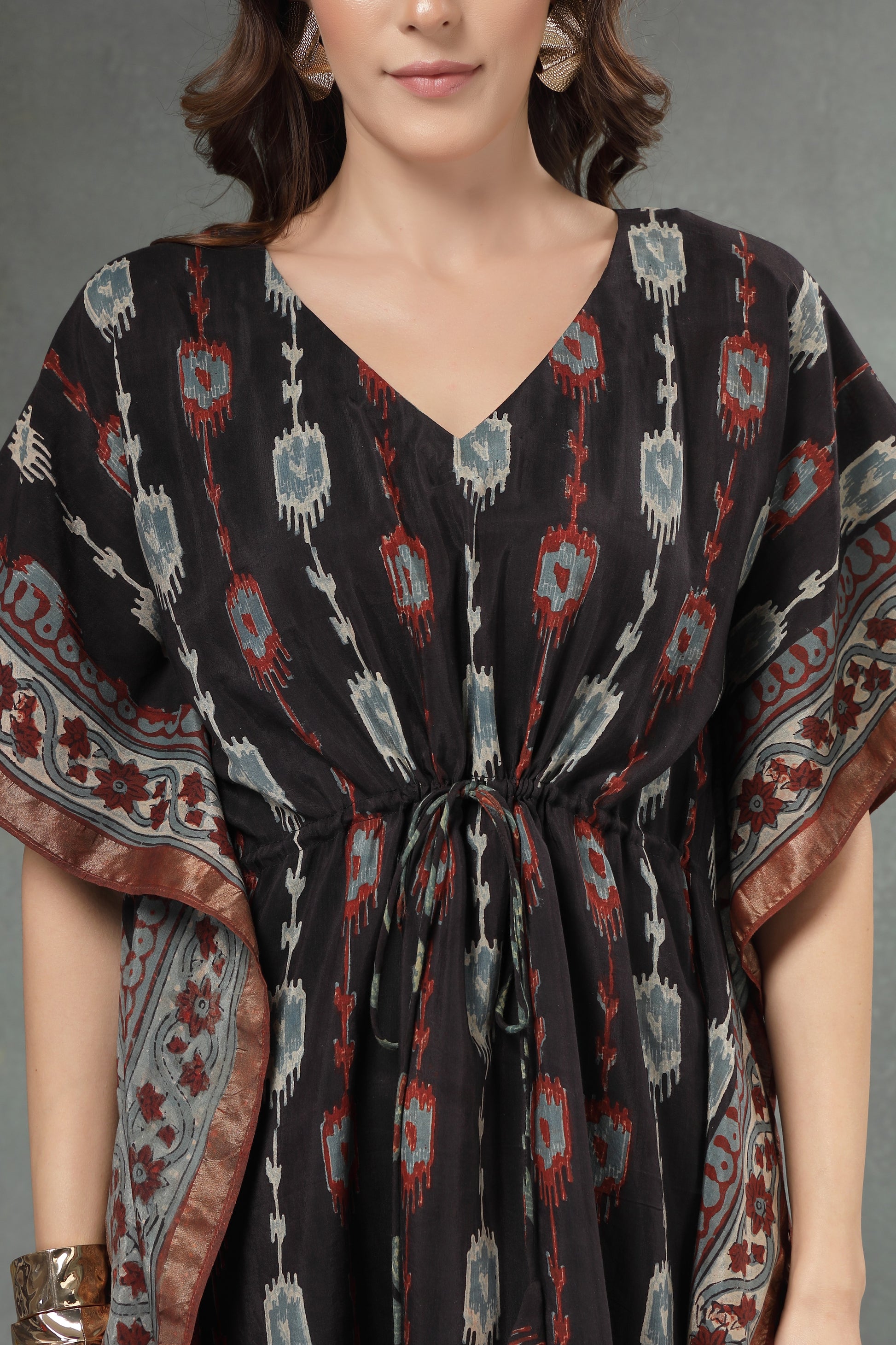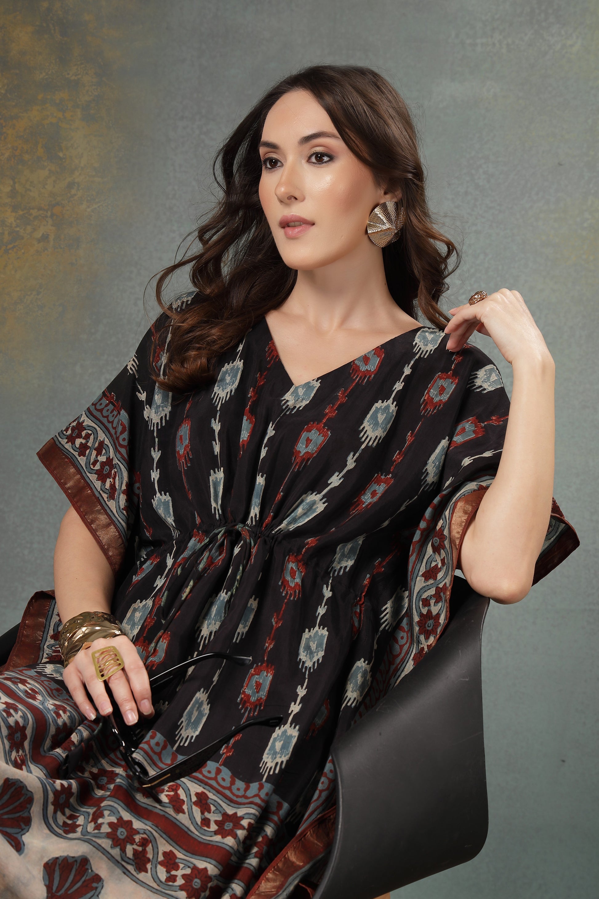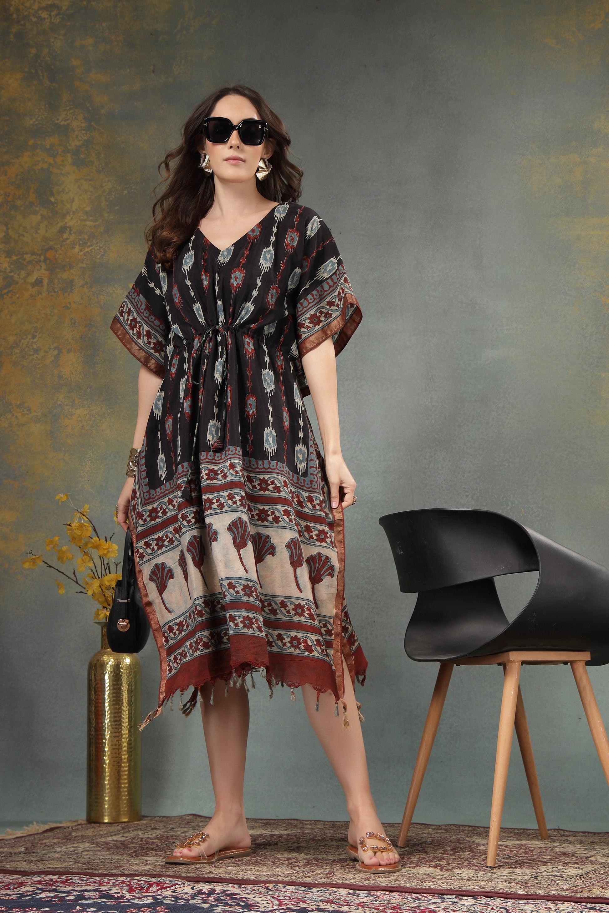 Perfect for resort wear, festive gatherings, casual evenings, or elegant day outings, this kaftan blends modern style with timeless charm.