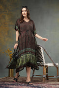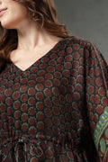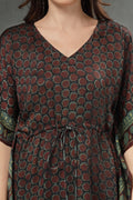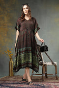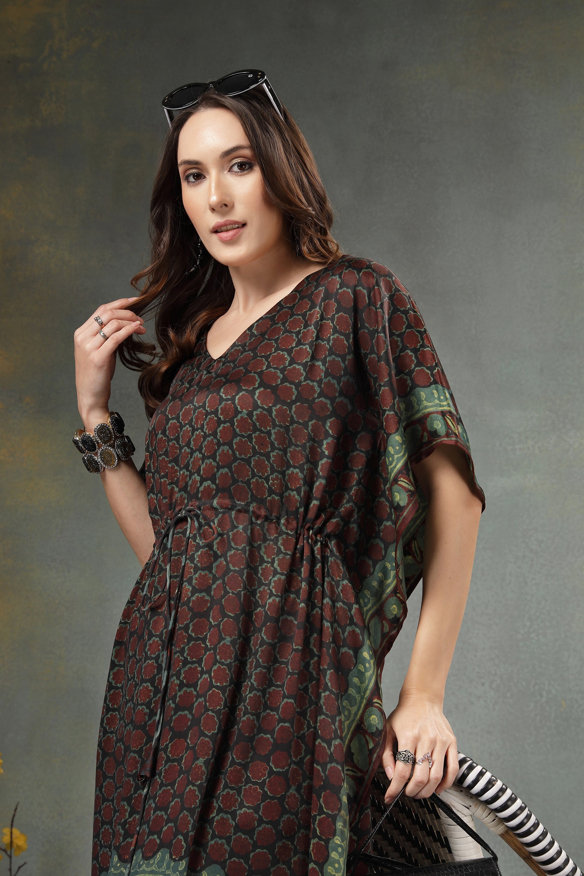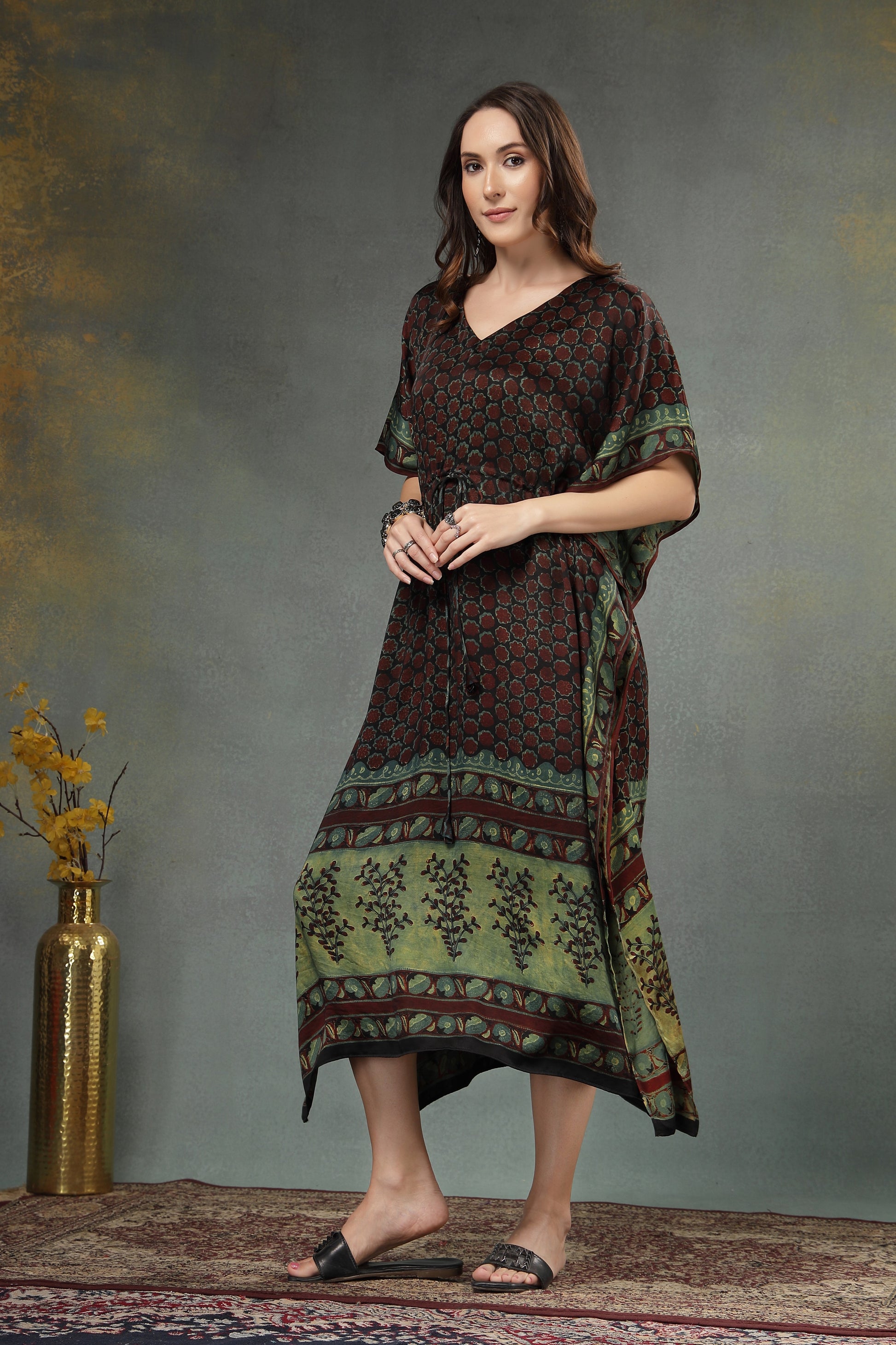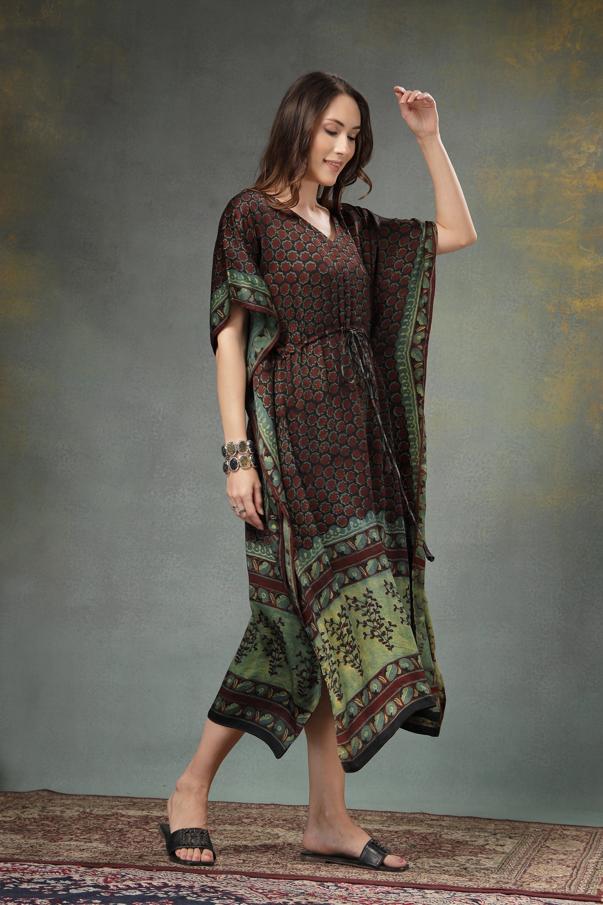 Elegant Modal Satin Hand-Block Printed Kaftan Dress