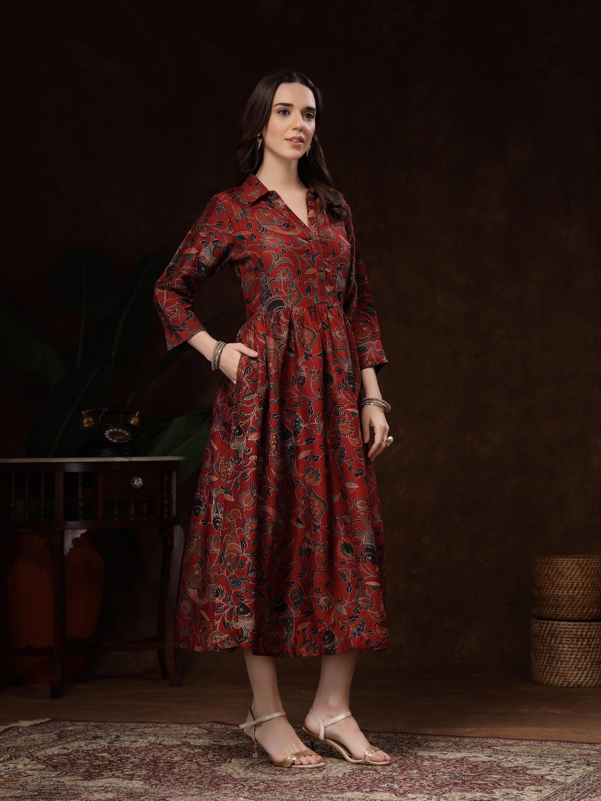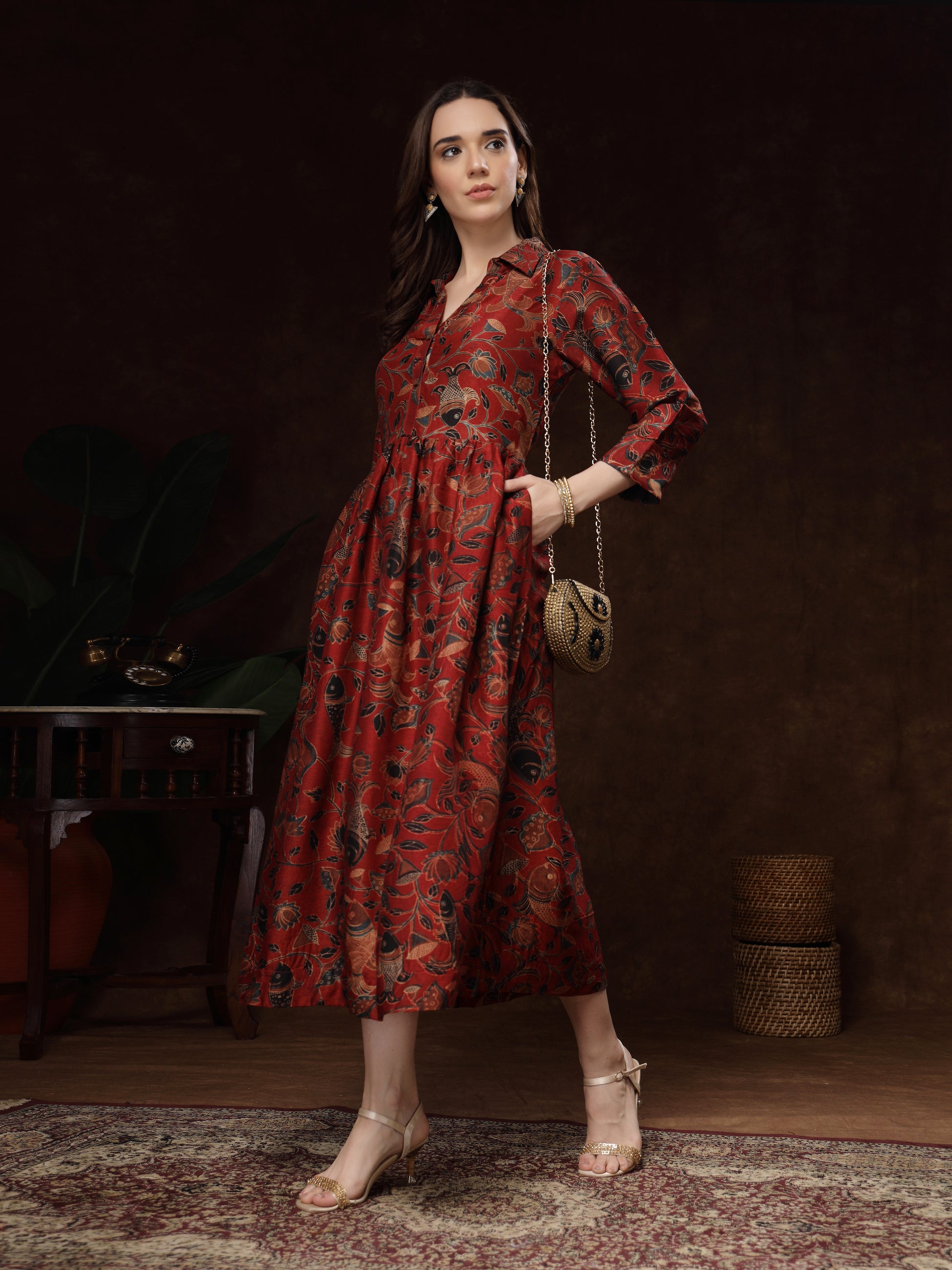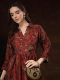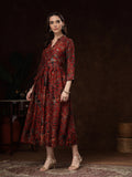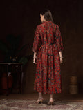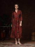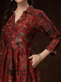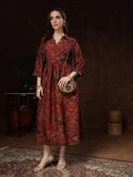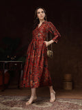Hand Block Printed Katan Satin Dress – Rust Red