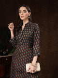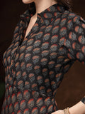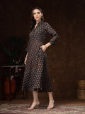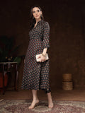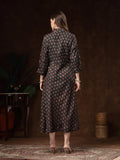 Black Hand Block Printed A-Line Dress