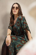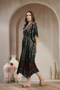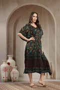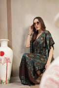 Luxury Modal Satin Printed Kaftan Dress with Adjustable Waist