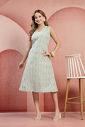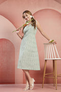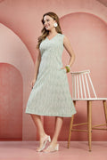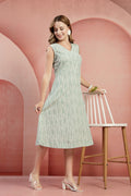 Refresh your everyday wardrobe with this elegant mint green cotton dress, designed for comfort and effortless style. Crafted from soft, breathable cotton fabric, this sleeveless A-line dress features a flattering V-neckline and a subtle all-over print that adds a touch of sophistication. The knee-length silhouette ensures ease of movement, making it perfect for casual outings, brunch dates, office wear, or summer gatherings. Pair it with flats for a relaxed look or heels for a polished finish.