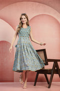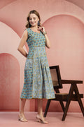 Flattering Silhouette: A sleeveless bodice with a round neckline leads into a pleated, voluminous midi skirt that moves beautifully.