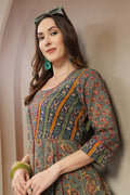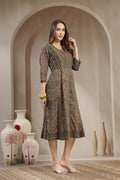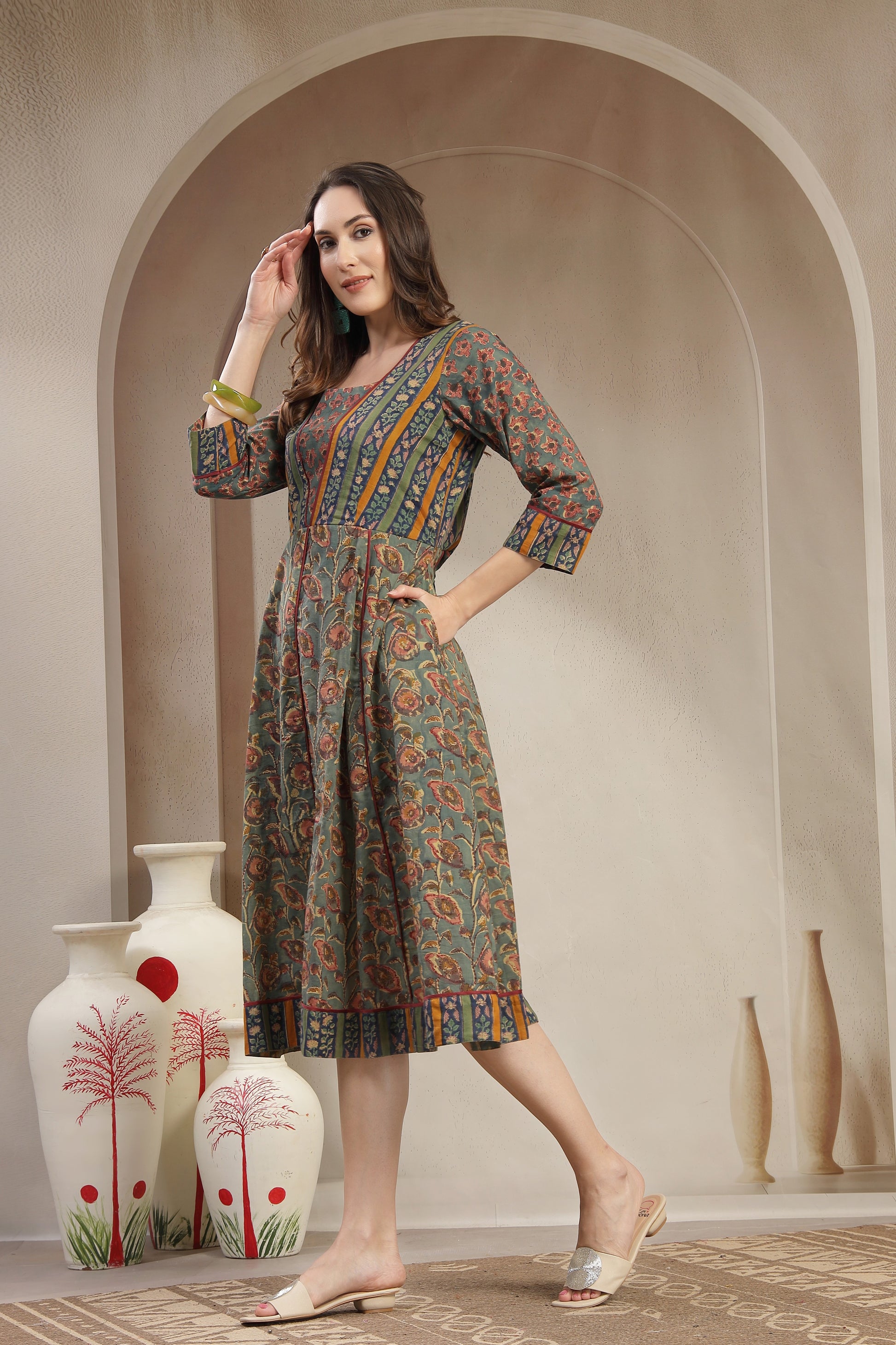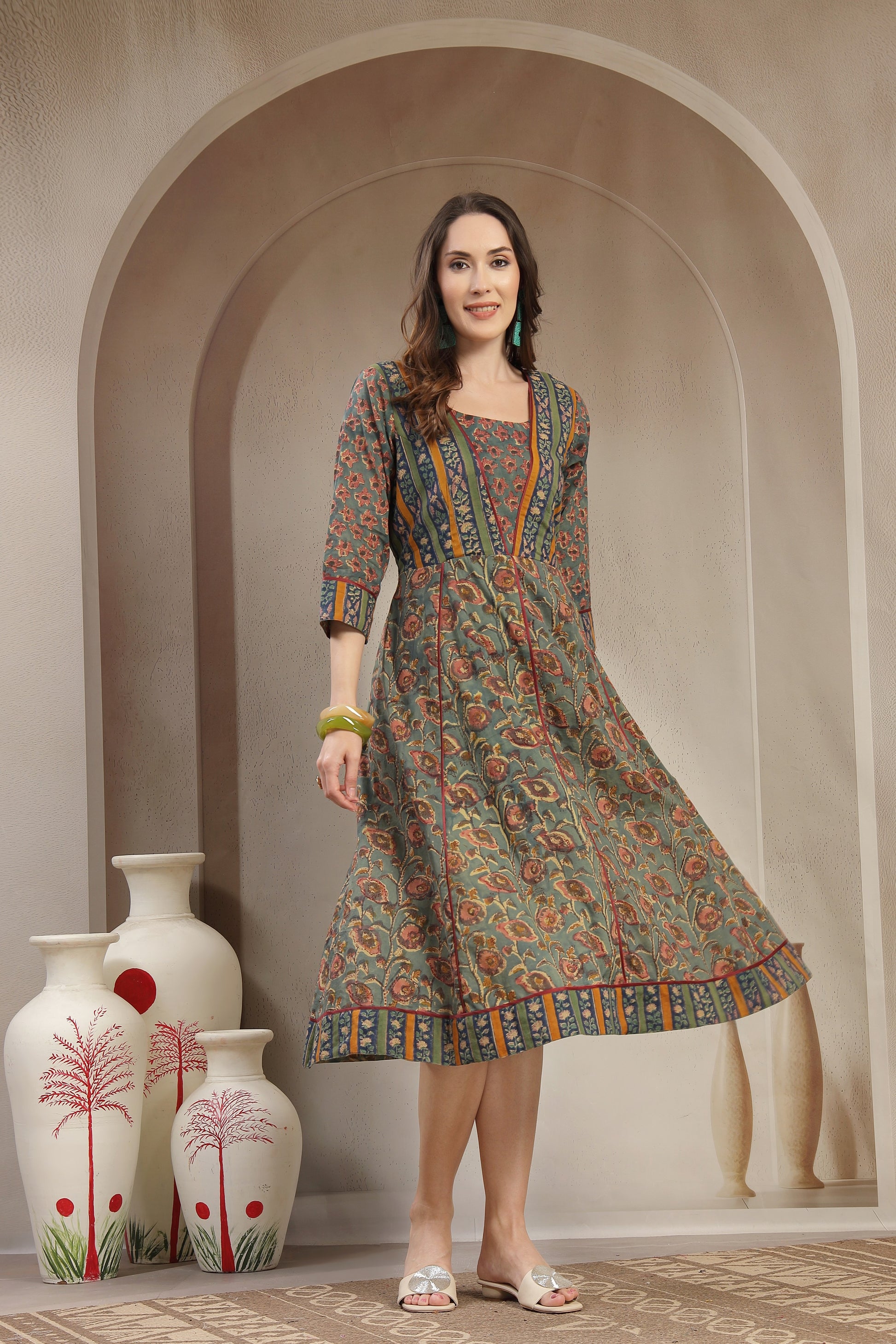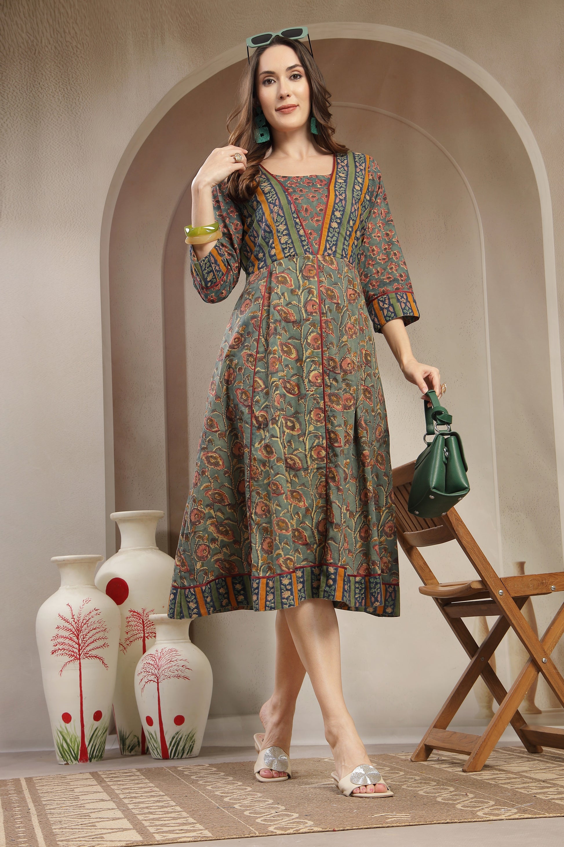 Premium Printed Cotton A-Line Dress | Handcrafted Ethnic Motif | Everyday & Casual Wear