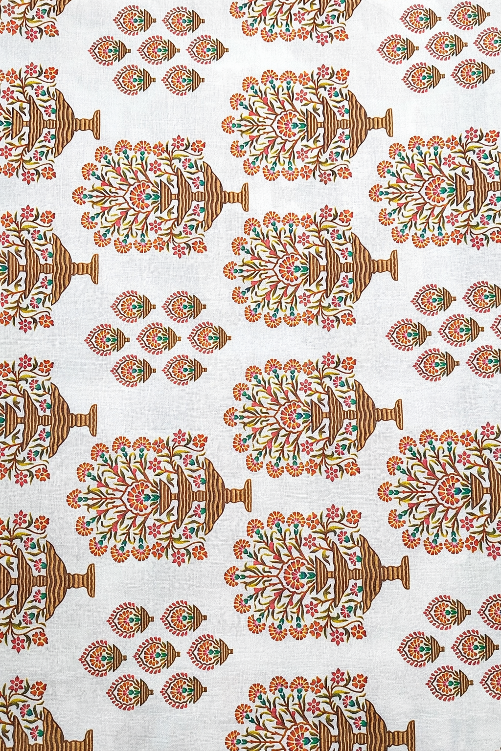 Bring timeless elegance to your creations with this beautifully crafted 100% cotton printed fabric. Featuring a classic Digital inspired Tree of Life motif with intricate floral detailing, this fabric reflects traditional artistry with a modern touch. The soft white base enhances the rich earthy tones, making it perfect for both ethnic and contemporary designs.