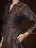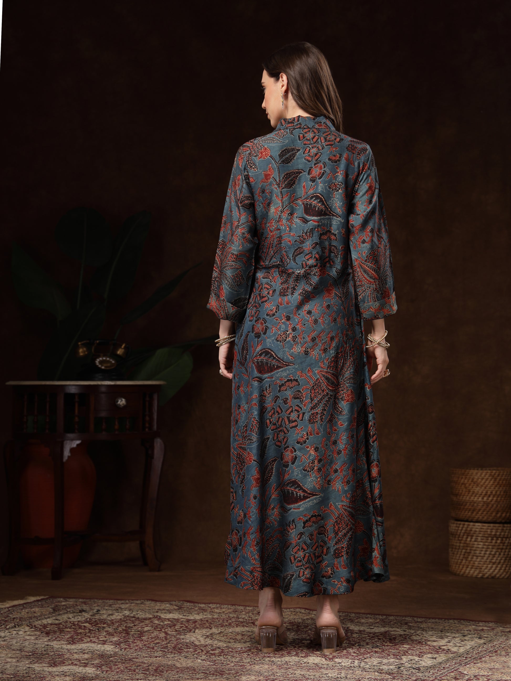 Step into effortless elegance with this beautifully crafted long dress featuring an intricate teal and maroon floral print. Designed for women who appreciate refined ethnic fashion, this dress blends traditional artistry with a contemporary silhouette. The soft, smooth fabric drapes gracefully, offering both comfort and style for all-day wear.