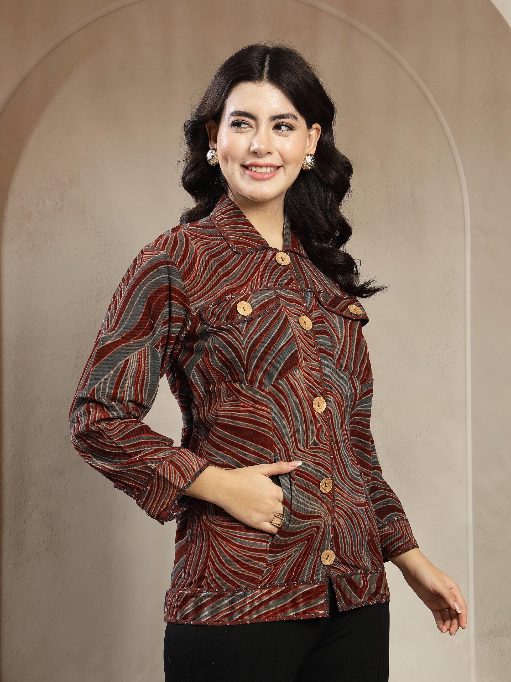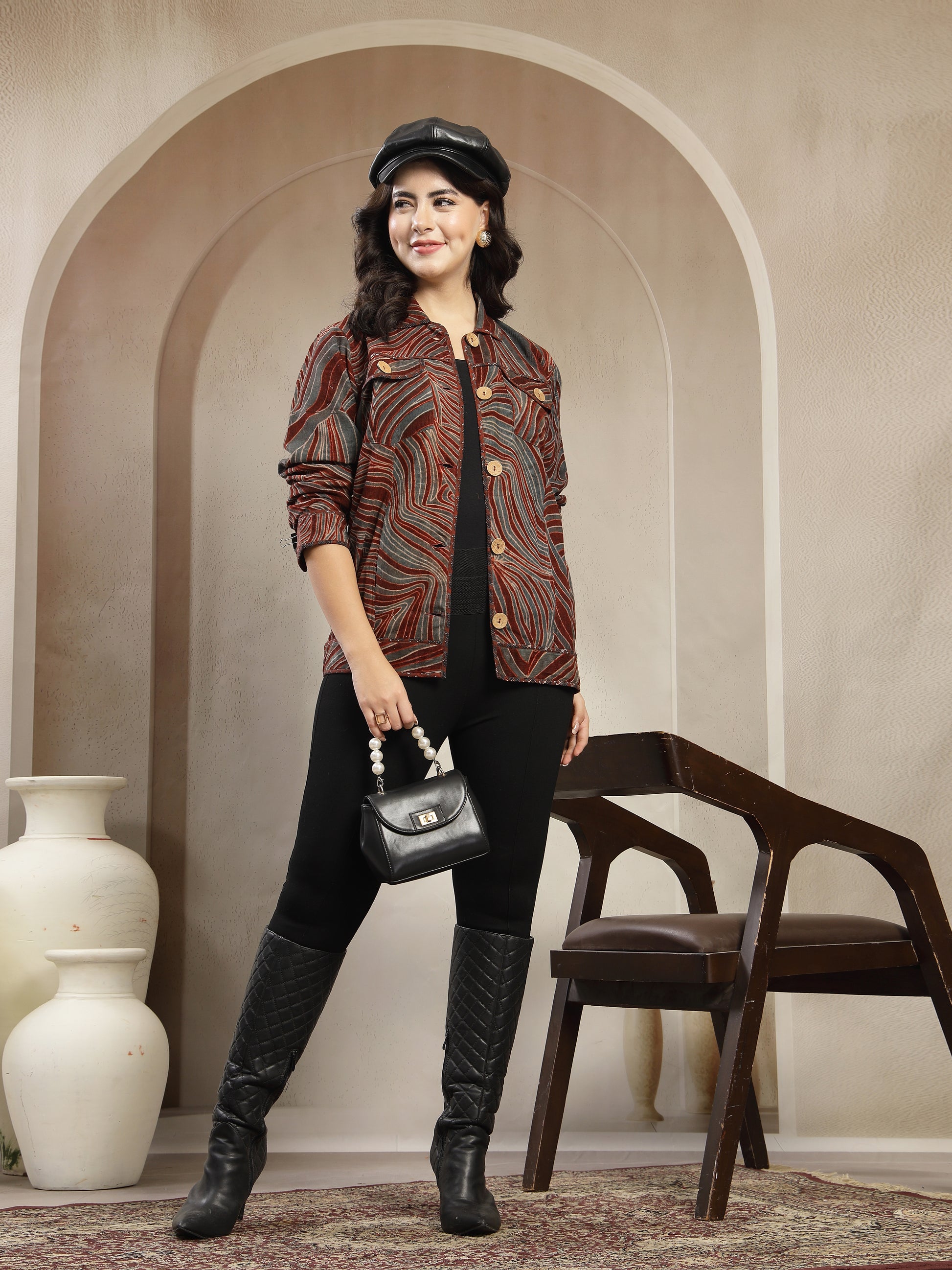 Add a touch of artistic elegance to your wardrobe with this beautifully hand block Vanaspati Print Women’s Jacket. Designed with a blend of earthy tones and contemporary patterns, this jacket offers both comfort and style. The handcrafted batik print gives it a unique character, while the premium-quality cotton fabric ensures breathability and all-day comfort.