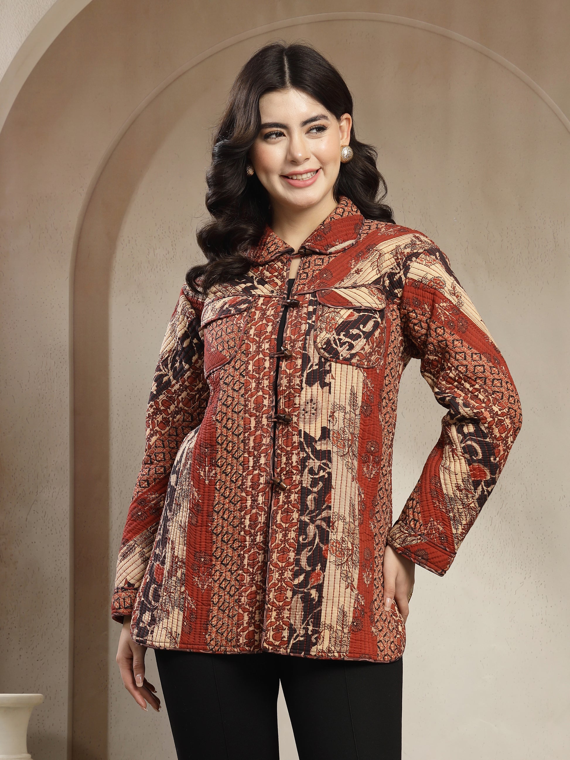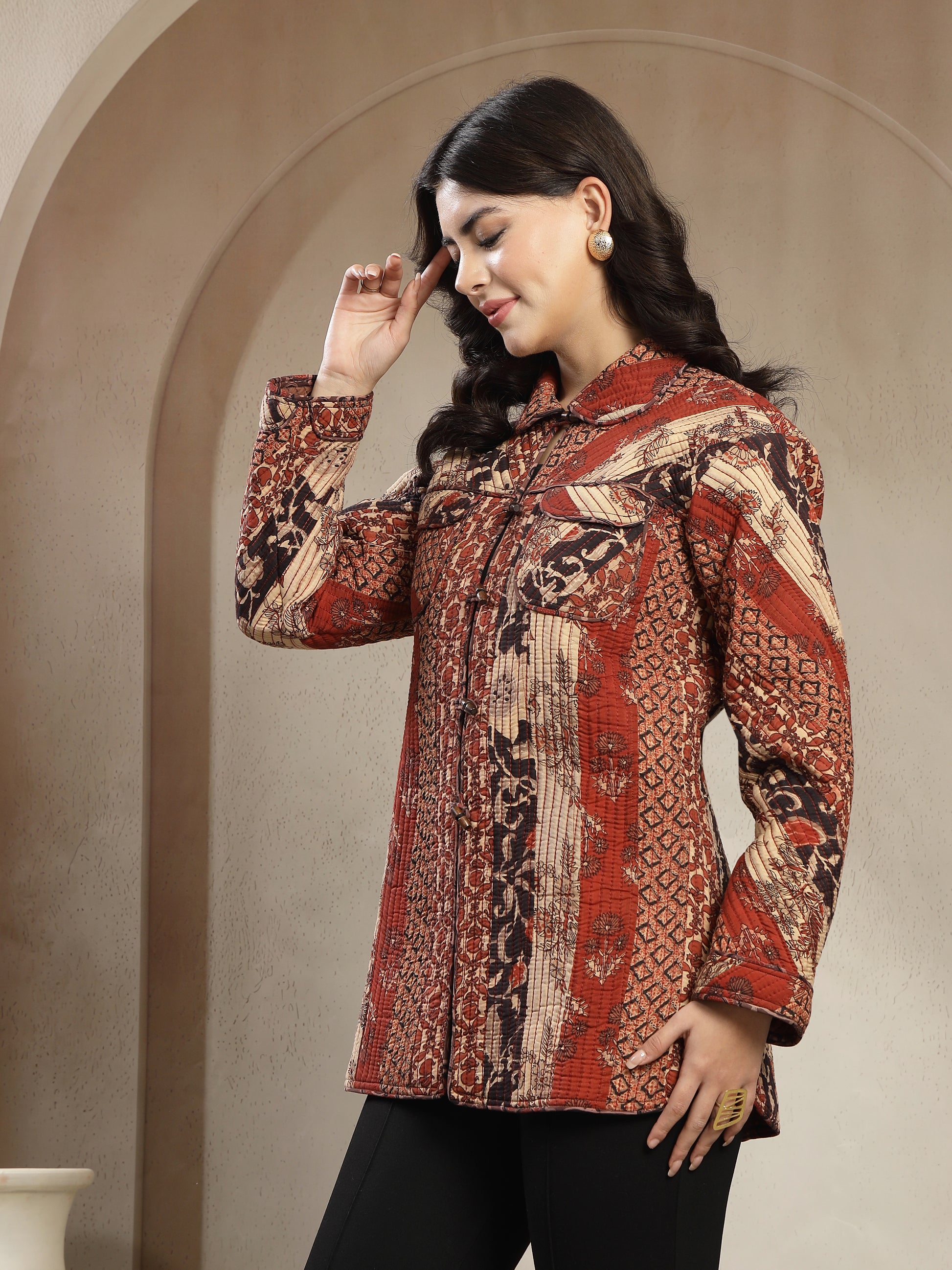 Elevate your everyday style with this beautifully crafted Batik Patchwork Long-Sleeve Jacket, designed with a harmonious blend of warm rust, maroon, beige, and earthy tones. Its intricate patchwork motif brings a rich cultural charm, while the structured silhouette gives it a modern, elegant look.